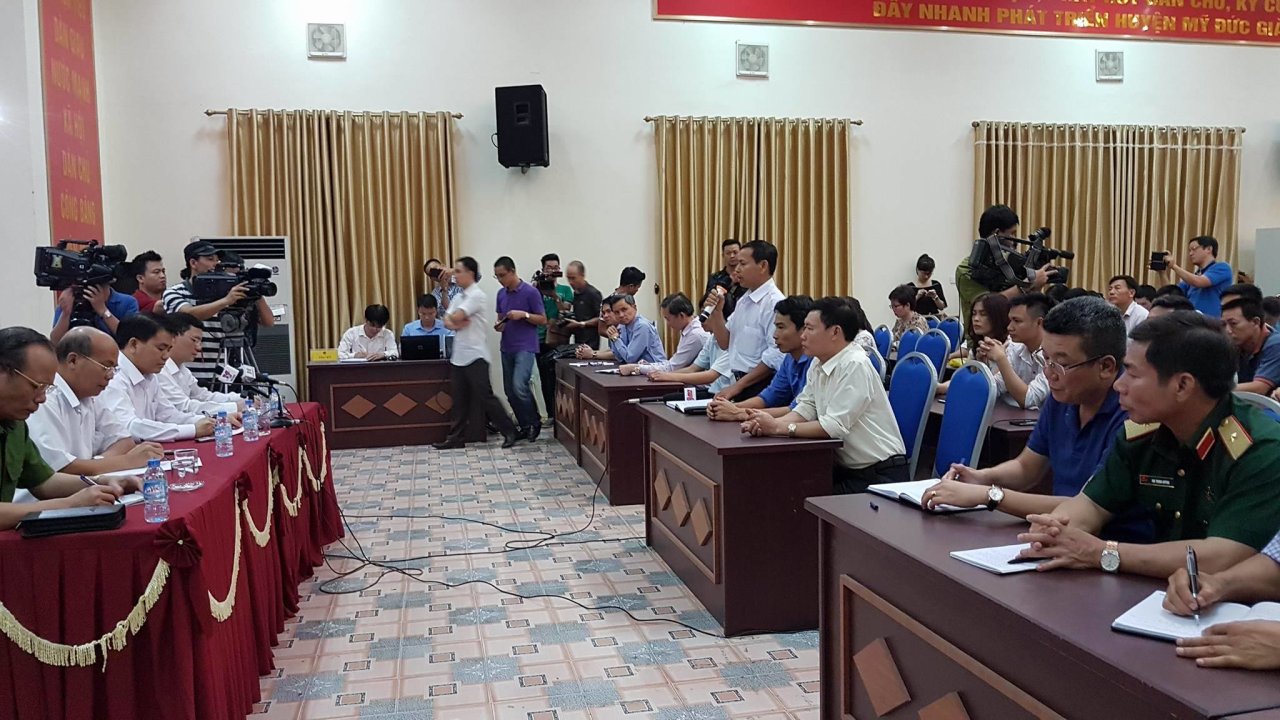 Ông Nguyễn Đức Chung, chủ tịch UBND thành phố nói rằng, ngày 15-4, người dân có giữ 38 người, đã được tuyên truyền, thuyết phục… đến trưa ngày 17 đã cho 18 người về. Hiện nay còn giữ 20 người. „Tôi đề nghị các đồng chí về tuyên truyền với người dân rằng lãnh đạo thành phố, trực tiếp là tôi sẽ đối thoại với người dân. Sẽ mời người dân đối thoại trong thời gian sớm nhất trong ngày mai hoặc ngày kia”