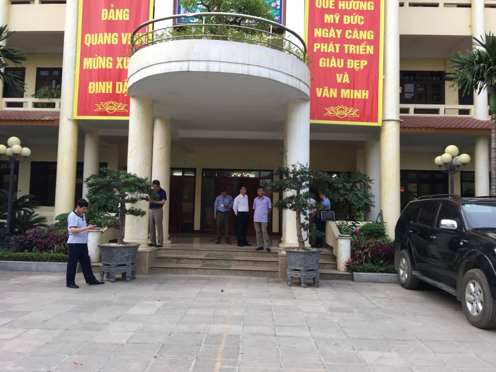 Lúc 18g55 chủ tịch UBND TP Hà Nội cùng đoàn công tác ra khỏi phòng làm việc riêng và đến hội trường huyện Mỹ Đức để tổ chức cuộc họp với cán bộ xã Đồng Tâm.